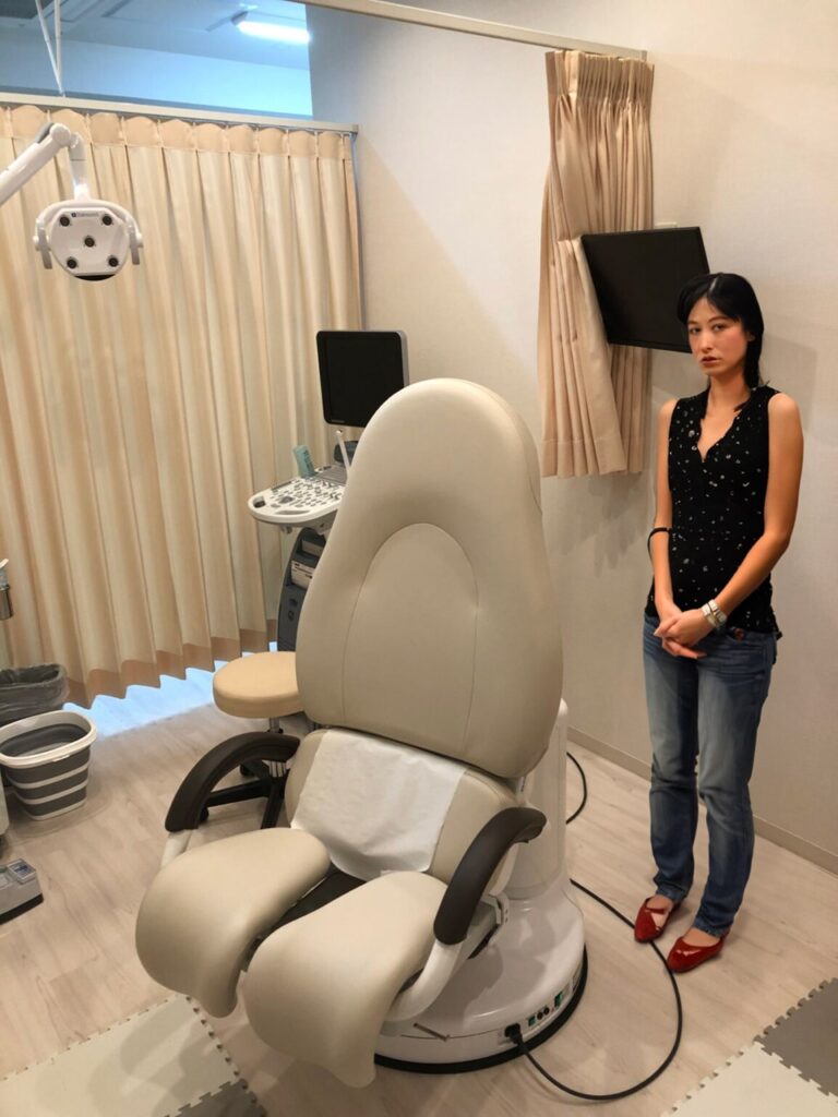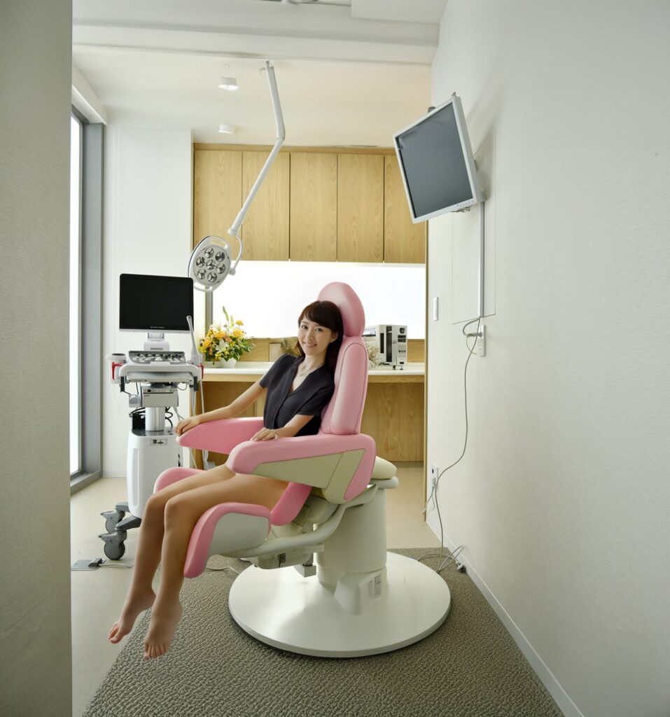 ピンクは女性を意識させる色ですが、内診台に採用されると優しいイメージになりますかね?